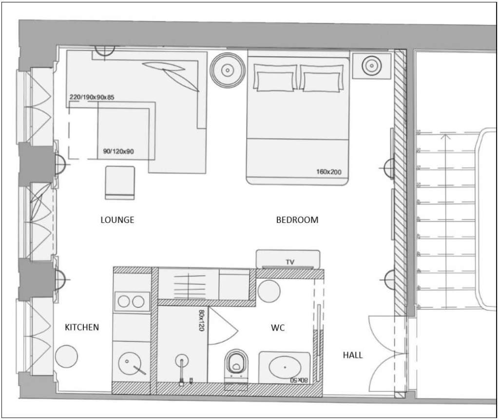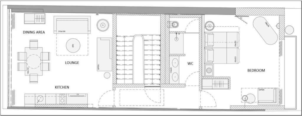 The aim of our intervention was to restore the old building while preserving the original layout, using original aesthetic elements mainly on the facade. When you enter the building, you discover 5 design apartments, the architecture of which involves a combination of vintage features and modern design. The building also has a store, on the ground floor, licensed for restaurants and drinks.